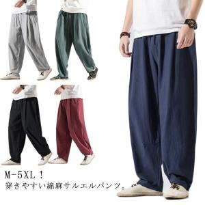 イージーパンツ カジュアルパンツ 綿麻 メンズ サルエルパンツ ワイドパンツ 春夏 リラックス ゆったり サルエル ボトムス 涼しい ロングパンツ 無