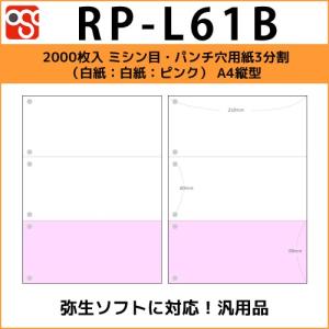 RP-L61B 2000枚入 ミシン目・パンチ穴用紙3分割(白紙:白紙:ピンク) A4縦型サイズ