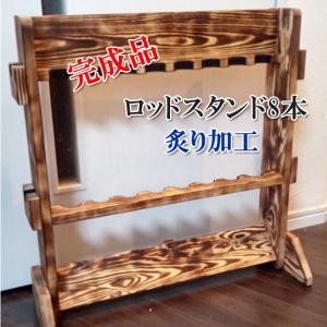 ロッドスタンド8本収納【サイドリールホルダー4カ所付き】【炙り加工】