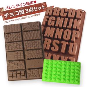 【バレンタイン限定】 チョコレート型 シリコンモールド 3点セット 簡単 手作り 親子 アルファベット 12種板チョコ 4種ミニ恐竜 焼き型 チョコ型