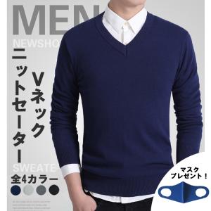 セーター Vネック メンズ ゆったり スクールセーター ビジネス コットン100% ニット 長袖 無地 吸水吸湿 毛玉ができにくい 制服 黒 グレー ネイビー