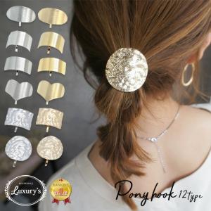 ポニーフック ヘアフック ヘアカフス シンプル メタル ハート オーバル スクエア ゴールド シルバー ギフト プレゼント