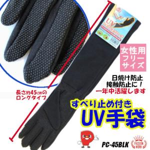 UVカット&滑り止め付 PC-45BLK 黒綿ロング手袋|綿100% コーマ糸使用 45cm ロング丈 手の甲 日焼け防止 紫外線対策 スタイリッシュ 手袋
