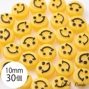 ビーズ30個 10mm 両穴 スマイル マーク 正規商品 黄色 黒字 両面柄入り 厚み6mm 穴2mm にこちゃんマーク ハンドメイドパーツ