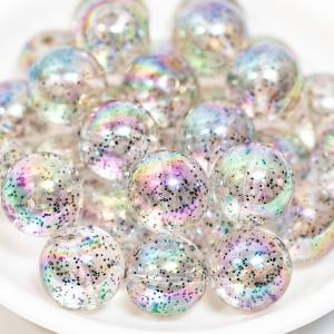 ビーズ 大粒 14mm 30個 両穴 穴あり ビー玉風 ラメ入り ブルーラメ 光沢艶玉 オーロラ加工 丸玉 アクリルビーズ ラメビーズ キラキラ