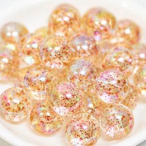 ビーズ 14mm 30個 大粒 ビー玉風 ビーズパーツ ラメ入り ラメビーズ 両穴 オレンジラメ 大きいビーズ キラキラビーズ