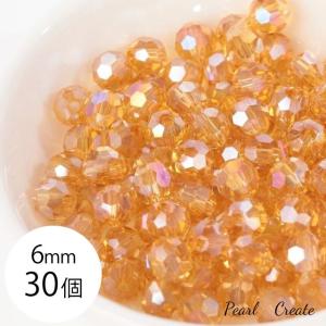 ガラスビーズ 6mm 30個 両穴 ABクリスタル カットビーズ スワロ ゴールド オレンジ シャンパンゴールド 32面カット 多面 アクセサリー ピアスパーツ