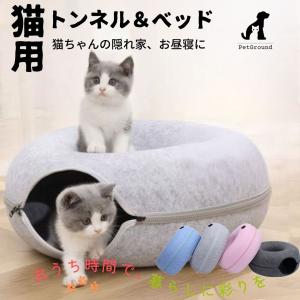 猫 トンネル ベッド ドーナツ 猫ベッド ドーム型 キャットハウス 隠れ家 フェルト 猫グッズ 爪とぎ 猫鍋 猫 おもちゃ 送料無料 PetGround