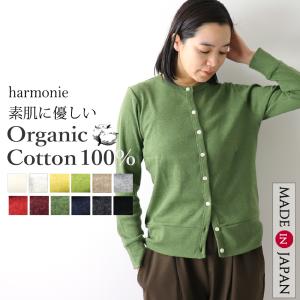カーディガン レディース 綿100% 日本製 秋 上着 ブランド 黒 赤 緑 オフィス harmonie Organic Cotton アルモニ オーガニックコットン カーディガン 8780145