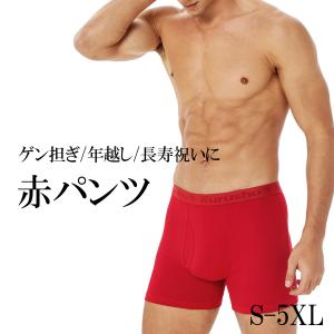 ボクサーパンツ 股上深め 前開き 綿 赤色 赤い下着 パンツ 深履き 還暦祝い メンズ 下着 肌着 ゲン担ぎ 合格祈願 プレゼント 爆買