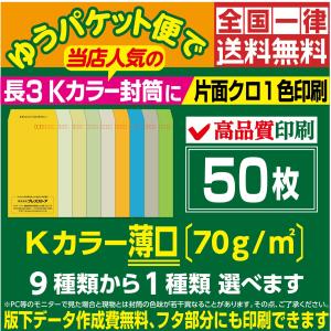 封筒印刷 長3カラー封筒 薄口 黒1色 版下作成費無料 50枚セット