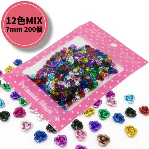 アルミ薔薇 レジン 封入 デコ ネイル パーツ用 (12色MIX, 7mm 200個)