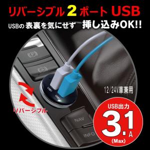 12V 24V 車用 USBソケット リバーシブル 2ポートUSB 3.1A ブラック DL-90