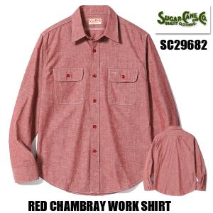 シュガーケーン SUGAR CANE レッド シャンブレーシャツ SC29682 RED CHAMBRAY WORK SHIRT 長袖 無地 赤 ワークシャツ アメカジ メンズ 東洋 正規品