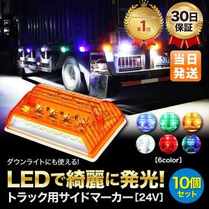 サイドマーカー 24V 角型 LED 10個 トラック サイドランプ ダウンライト付 簡単 アンバー レインボー 青 緑 白 橙 赤 防水 防塵 耐傷 簡単 取付 玉切れなし