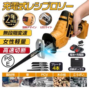 2年保証 充電式 電動ノコギリ 電動工具のこぎり レシプロソー 家庭用 女性 小型 強力 21V マキタ 18Vバッテリー互換 電動チェーンソー 高速切断 ブレード4本付き