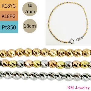 ブレスレット 18金 プラチナ カットボール 幅2mm 18cm K18 YG PG Pt850 ダイヤカット RMジュエリー