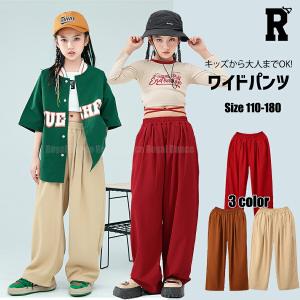 キッズダンス衣装 パンツ ワイドパンツ ベージュ ブラウン レッド 茶色 赤色 ストリート ヒップホップ hiphop 子供 キッズ ダンス 衣装 女の子 男の子