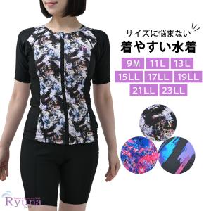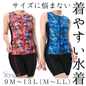 フィットネス水着 ジム用水着 レディース 30代 40代 セパレート ノースリーブ LL 13L 体型カバー 50代 60代 ママ プール ジム 大きい GR2213F