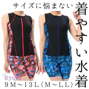 フィットネス水着 ジム用水着 レディース 30代 40代 オールインワン ノースリーブ M L LL 9M 11L 13L 体型カバー 50代 60代 大きい GR2204L