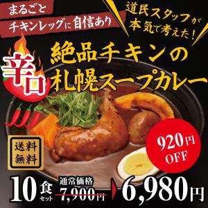 辛口 絶品チキンの札幌スープカレー 10食セット スープカレー レトルト 人気 スパイスカレー チキンレッグ 北海道 保存食 非常食