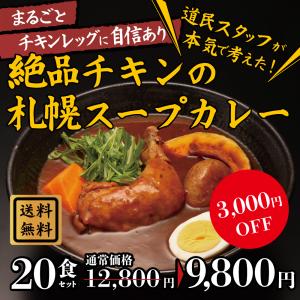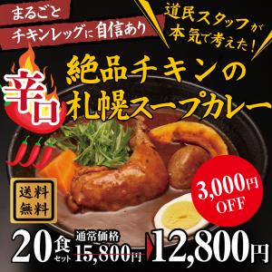 辛口 絶品チキンの札幌スープカレー 20食セット スープカレー レトルト 人気 スパイスカレー チキンレッグ 北海道 保存食 非常食