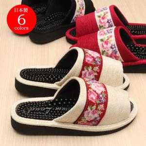 送料無料 日本製 シェニール織 健康スリッパ 健康サンダル ヘルシースリッパ 足つぼ ルームシューズ バラ柄 ローズ柄 爆買