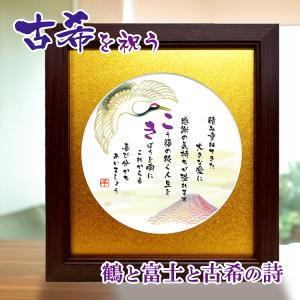 古希のお祝い プレゼント 鶴 富士山 赤富士 贈り物 額入 ポエム 詩 ギフト 70歳 誕生日 記念 縁起