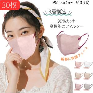 マスク 不織布 バイカラー 立体 女性 立体 おしゃれ 面長 丸顔 3d ニュアンスカラー 小顔 イエベ ブルベ 3D 30枚 爆買