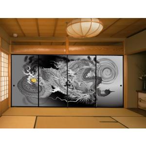デザイン襖紙 龍 4枚組 (襖/ふすま/ふすま紙/竜/ドラゴン/和紙/オシャレ/張替)