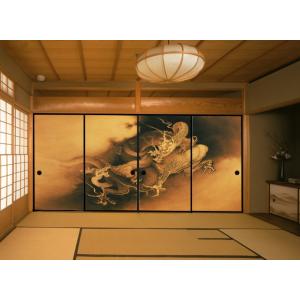 デザイン襖紙 狩野芳崖作「飛龍戯児図」 4枚組 (襖/ふすま/ふすま紙/竜/ドラゴン/和紙/オシャレ/張替)