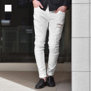 スキニーパンツ メンズ ストレッチパンツ ユーズド加工 タイト 細め 伸縮 伸びる アメカジ サーフ ビター オラオラ系 お兄系 白 黒 ホワイト ブラック S M L XL