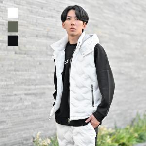 ダウンベスト メンズ シームレス 撥水加工 秋 冬 ノースリーブ 袖なし 無地 モード系 アウトドア系 サーフ系 ビター系 白 黒 ホワイト カーキ ブラック M L XL