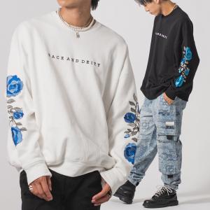 ローズ刺繍ワイドトレーナー メンズ ビッグシルエット オーバーサイズ ストリート系 韓国ファッション 韓国系 RE730 セブンサーティー