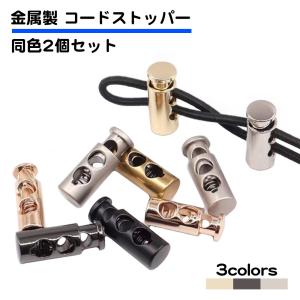 同色2個セット 金属製 コードストッパー 2穴 長さ調節 1mm 2mm 3mm 4mm 丸型 黒 銀 帽子 パラコード メタル ストッパー 紐 靴 コード 2つ穴 後付 送料無料