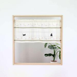 カフェカーテン:かわいい猫柄 ステッチキャット 幅110cm×高さ45cm(ゆうパケット対象商品)