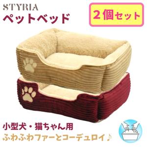 犬 猫 ペット ベッド STYRIA ふっくら コーデュロイ ペットベッド 洗える 冬 冬用 あったか 暖かい かわいい おしゃれ 小型犬 スクエア 滑り止め 2個セット