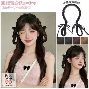 地雷系カチューシャ 三つ編みカチューシャ ウィッグ付きカチューシャ ツインテール 付け毛 小顔 かわいい おしゃれ 4色 闇かわいい ヘアアレンジ 編み込み風
