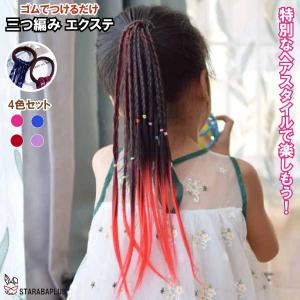 三つ編み 編み込み 4本 エクステ エクステンション カラフル ウィッグ キッズ おしゃれ 付け髪 ダンス ヒップホップ レゲエ ダンサー メール便 送料無料