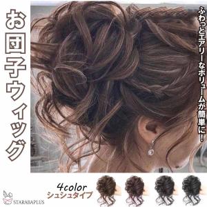 お団子ウィッグ シュシュ ガール ふんわり かわいい 女性 レディース つけ毛 髪型 超自然 簡単 使いやすい オシャレ 盛り髪 パーティー 花火 メール便 送料無料