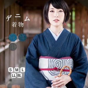 デニム着物 クロキデニム × ROCCA 着物 レディース 日本製 高級 デニム 洗える着物 国産 岡山 井原 KUROKI デニム素材 綿 単衣 カジュアル おしゃれ