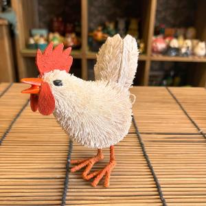 ニワトリ 置物 にわとり オブジェ ヤシ繊維 手作り お洒落 可愛い たわしアニマル ホワイト 動物 フィリピン製