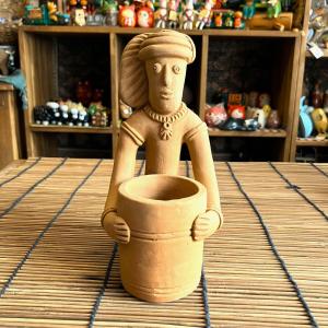 エスニック 置物 素焼き オブジェ ペン立て アジアン雑貨 インド 水汲み壺 インテリア 民族