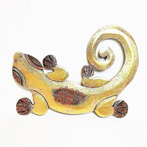 ヤモリ 壁掛け エスニック ボード 木製 縁起 インドネシア製 ゲコパネル Sサイズ ゴールド