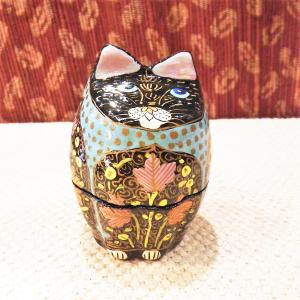 ネコ 小物入れ ブラック 置物 BOX エスニック ペーパーマッシュ 立ちネコ インド 手作り