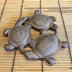カメ 鍋敷き 鉄製 亀3匹 三亀の敷台 オブジェ 和風