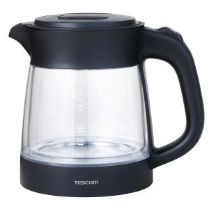 【新製品】 電気ケトル 小型 ケトル ガラス 1L 透明 二重構造 軽量 湯沸かし 湯沸かし器 転倒流水防止機能 TKG45A-K テスコム 公式店 日本メーカー