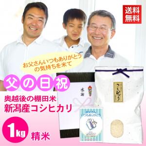 父の日 プレゼント お米 1kg 新潟産コシヒカリ 白米 精米 メッセージカード付き 棚田米 新潟米 産地直送 人気 おしゃれ お祝い 父 送料無料
