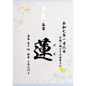 命名書 男の子 女の子 - 名入れ 縁起物 命名紙 代筆 / お名前+生年月日+出生時刻+身長体重 / A4サイズ ラミネート加工済み/ 赤ちゃん 名付け祝い