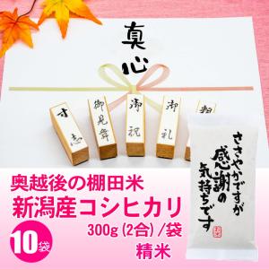 心を米てありがとう 感謝の粗品 棚田米 新潟産コシヒカリ 300g 2合 x10袋セット 御礼 景品 プチギフト 記念品 お返し 人気